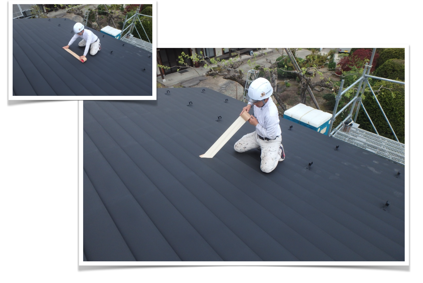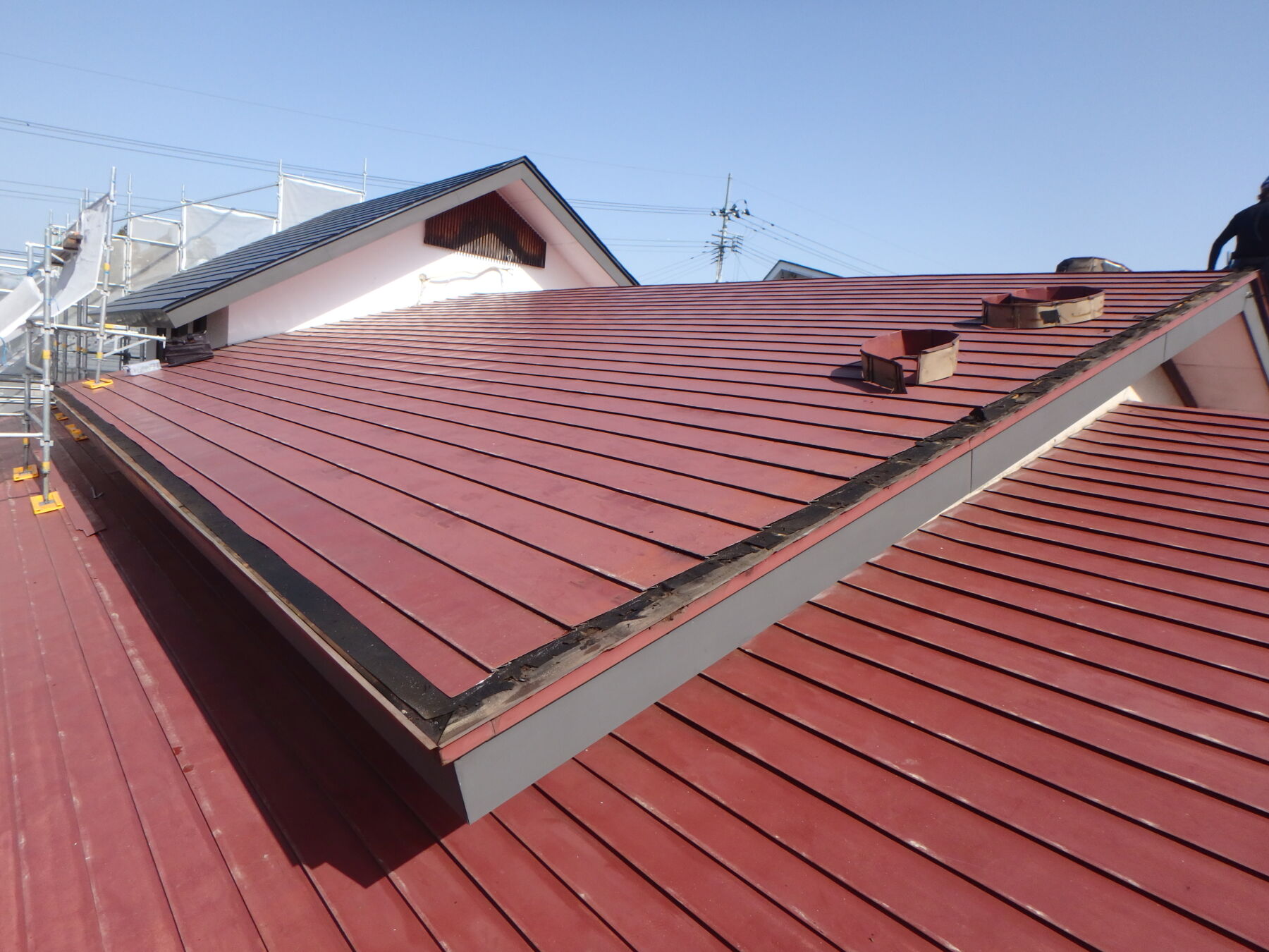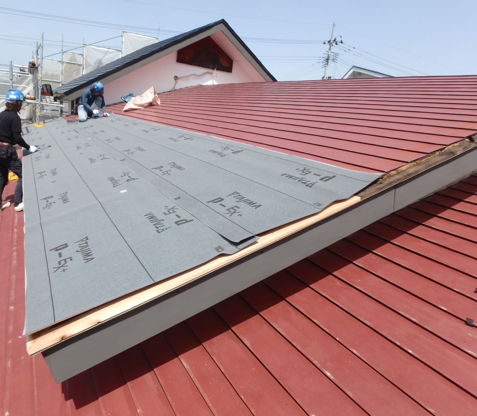 ここからは屋根の葺き替え工事(重ね葺き)です。