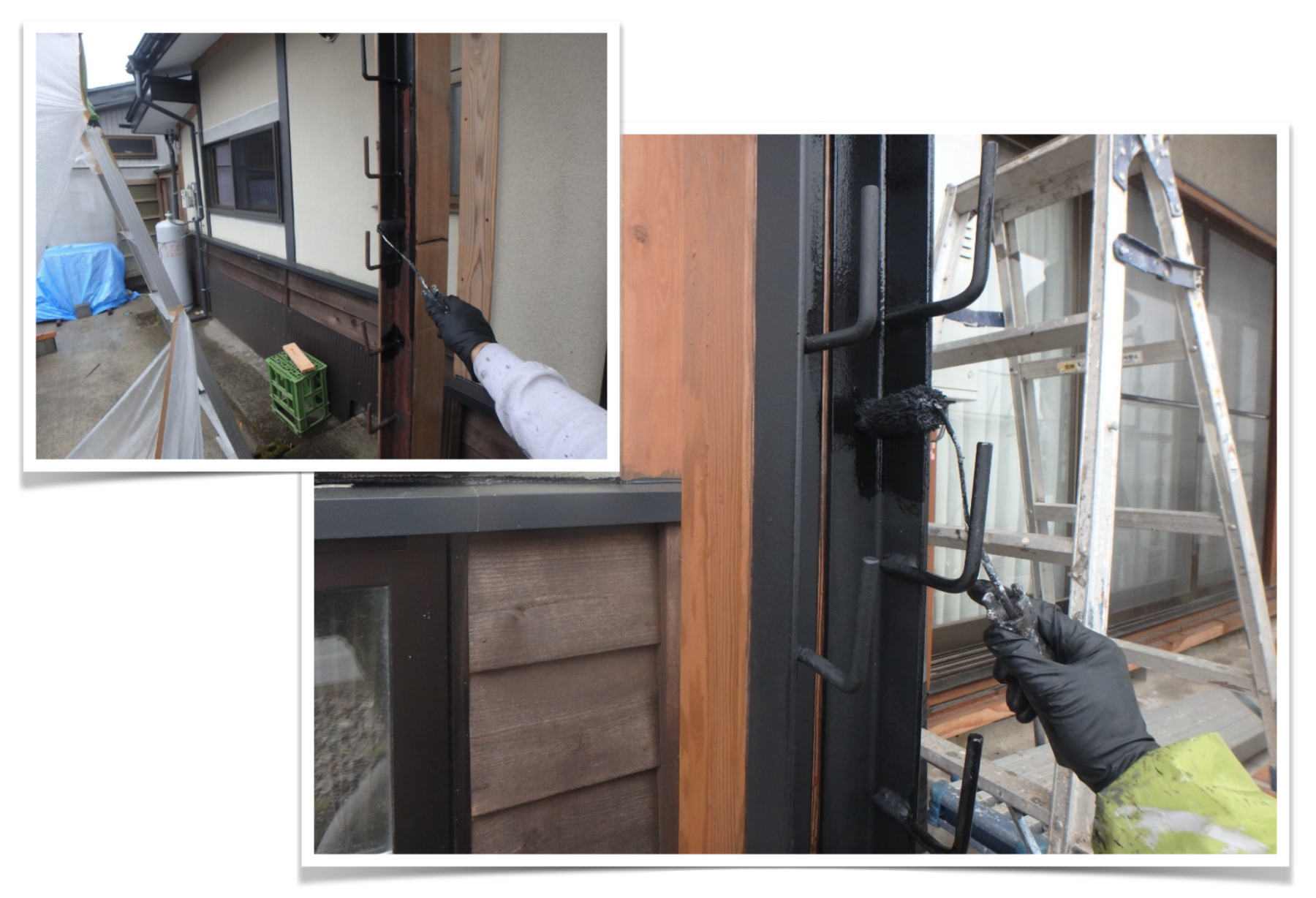 雪囲いの留め具も「つや消し黒」で塗装しました。