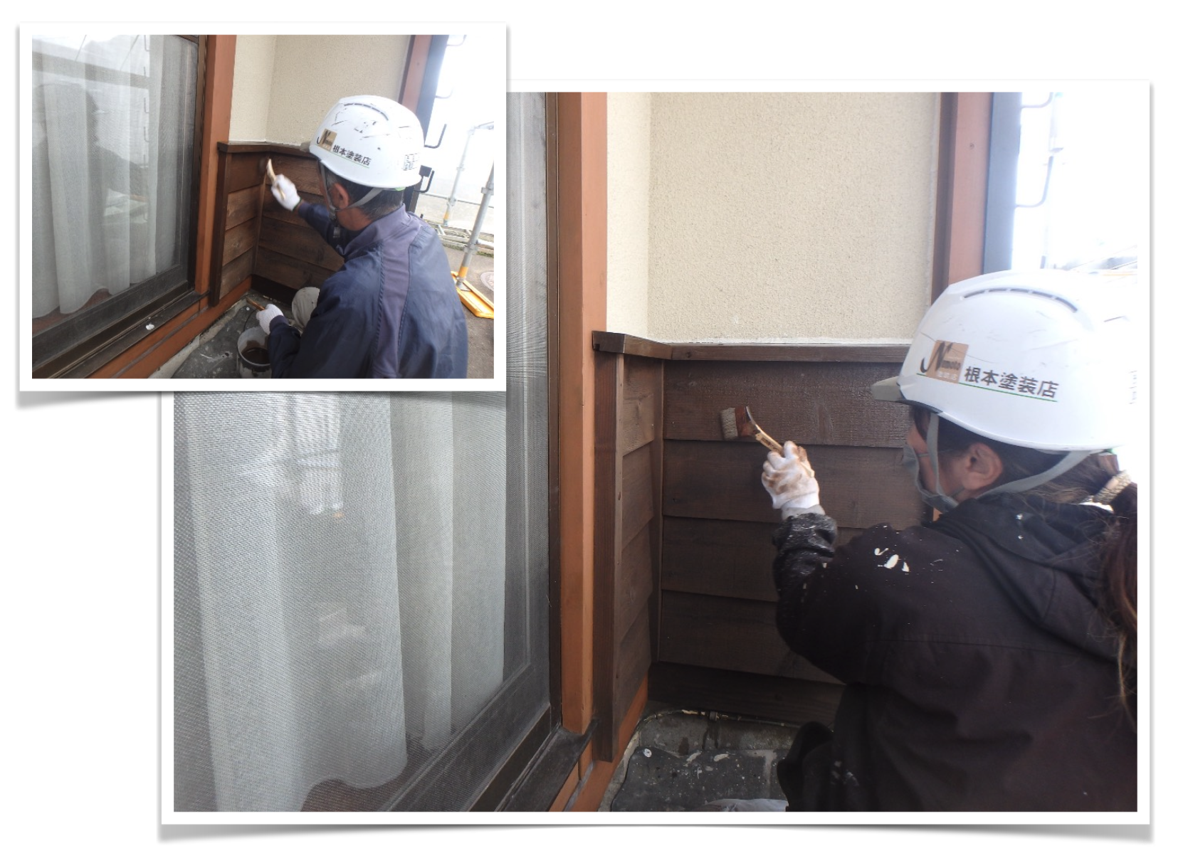 腰壁の部分は柱より濃いブラウンで塗装しました。