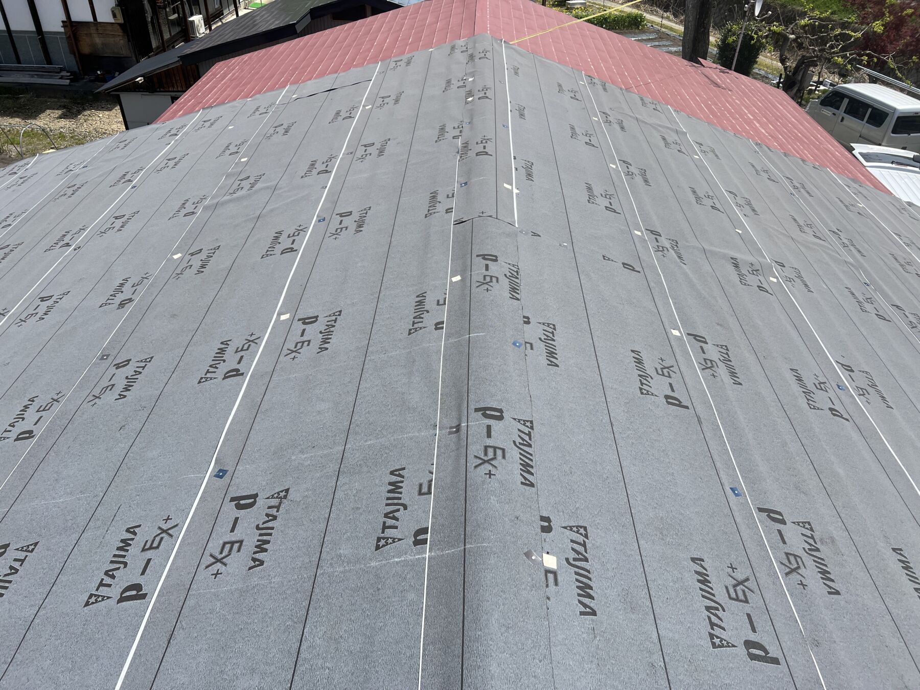 下葺材:改質アスファルト防水シートを敷いていきます。