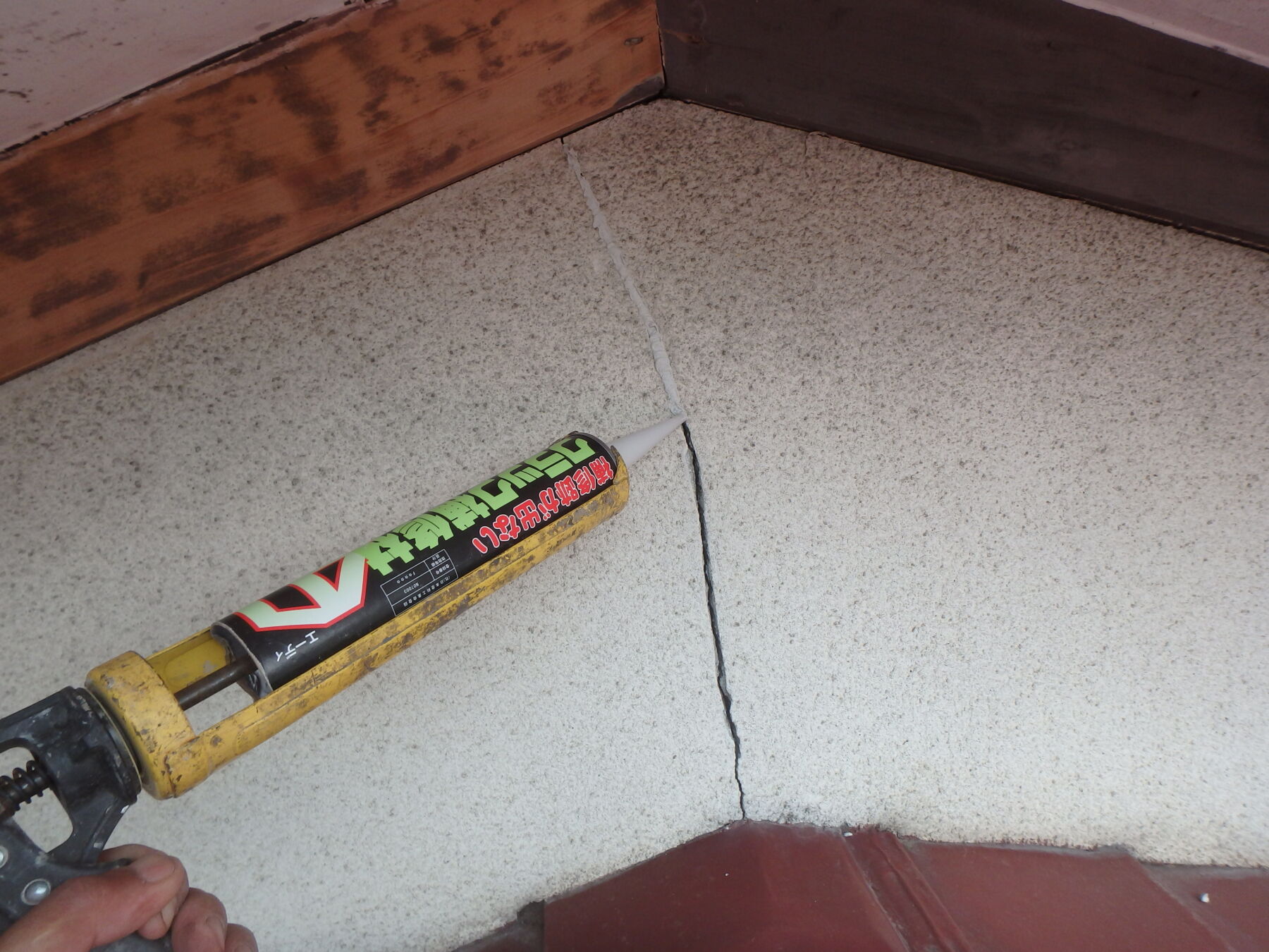 溝にクラック補修材を充填します。