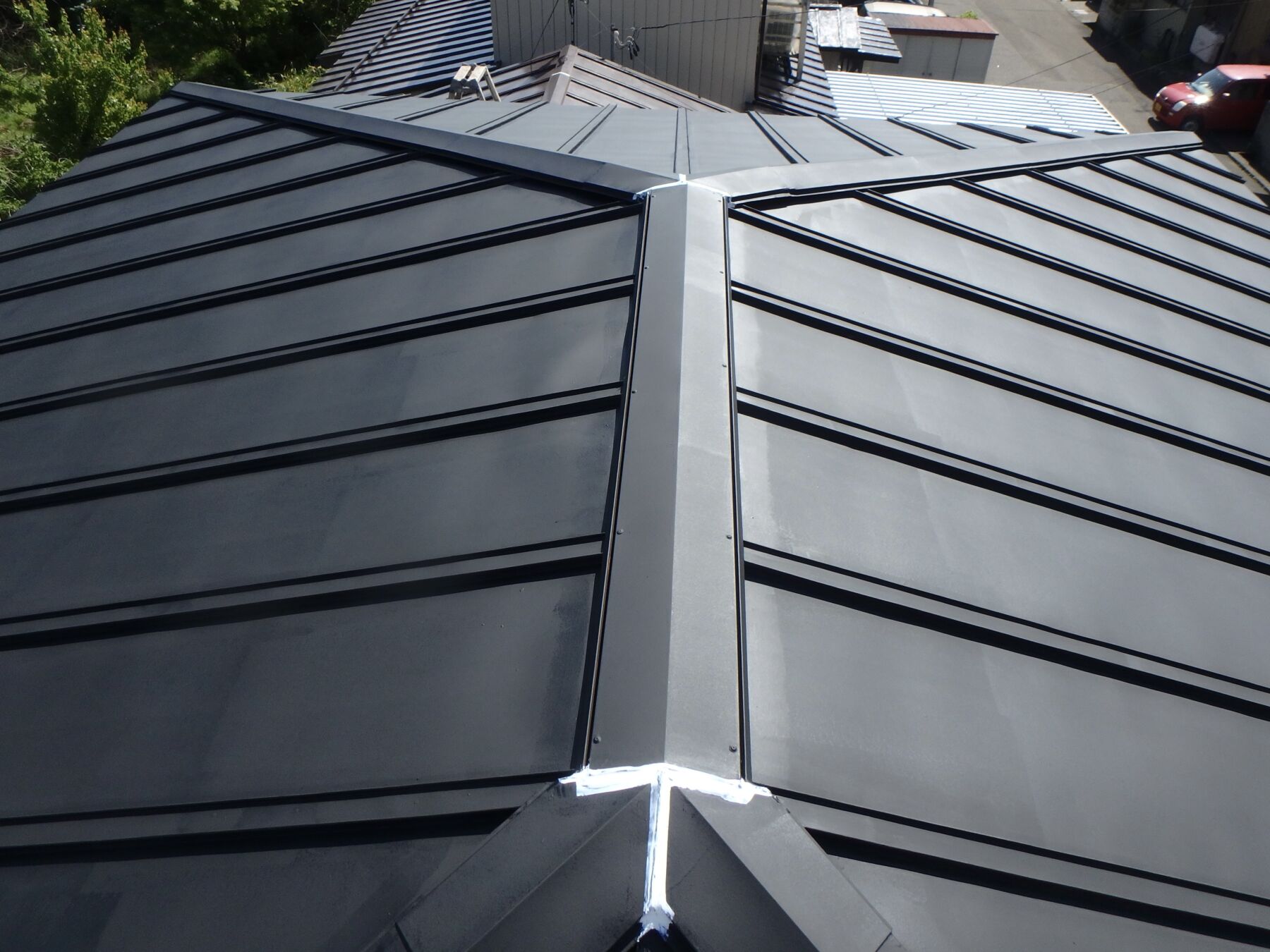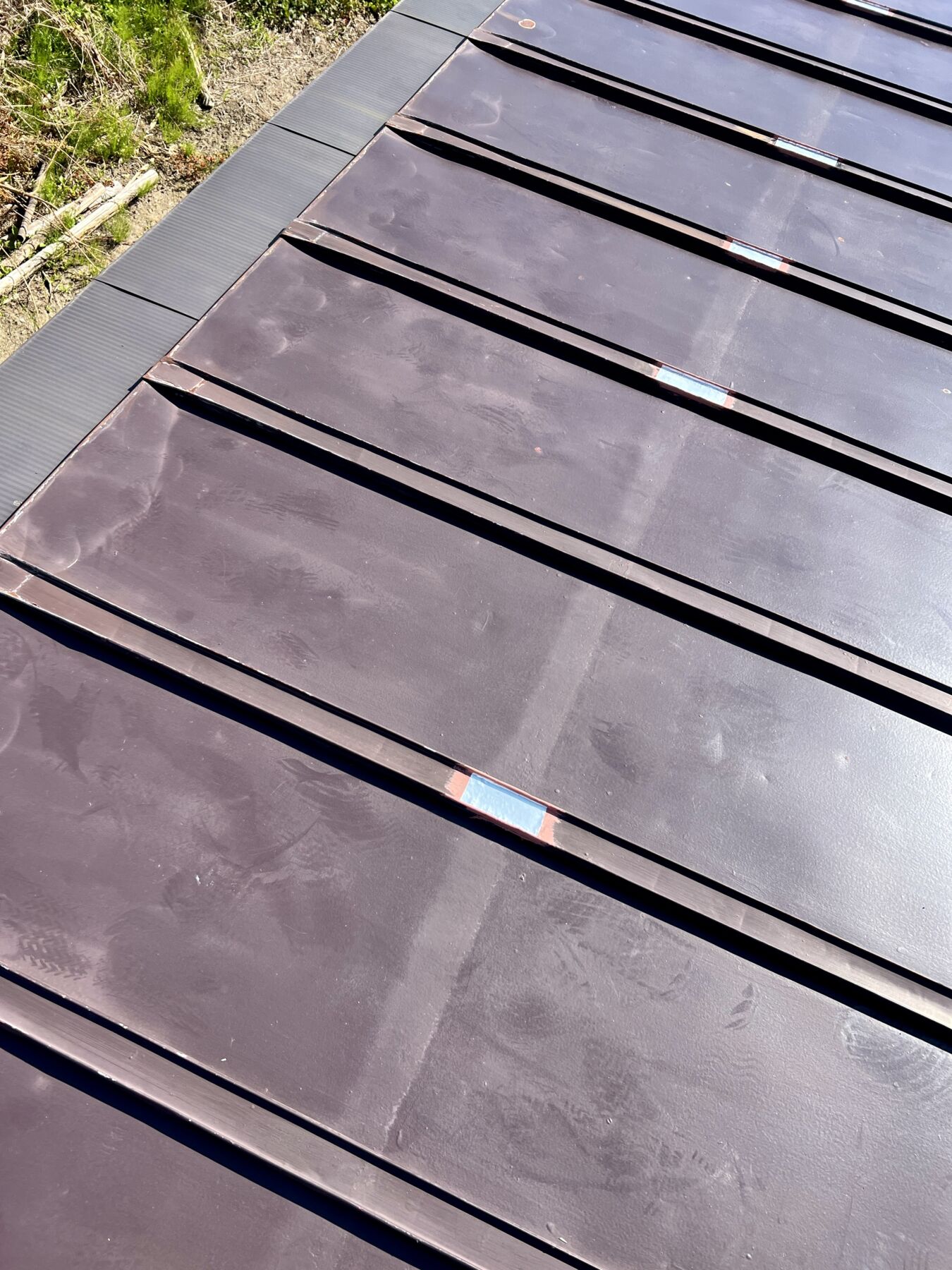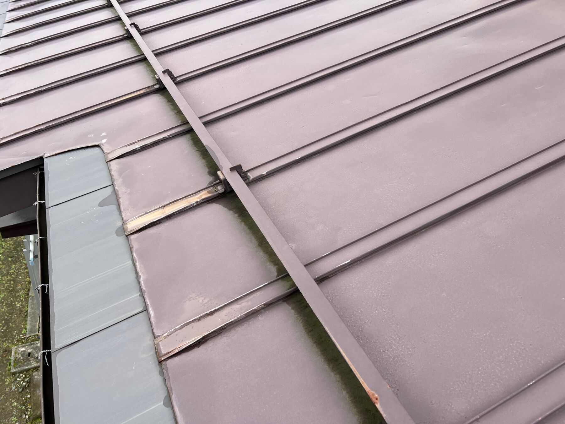先に細部(瓦棒)をハケで塗装し、平場はローラーで適切な厚みに塗装します。