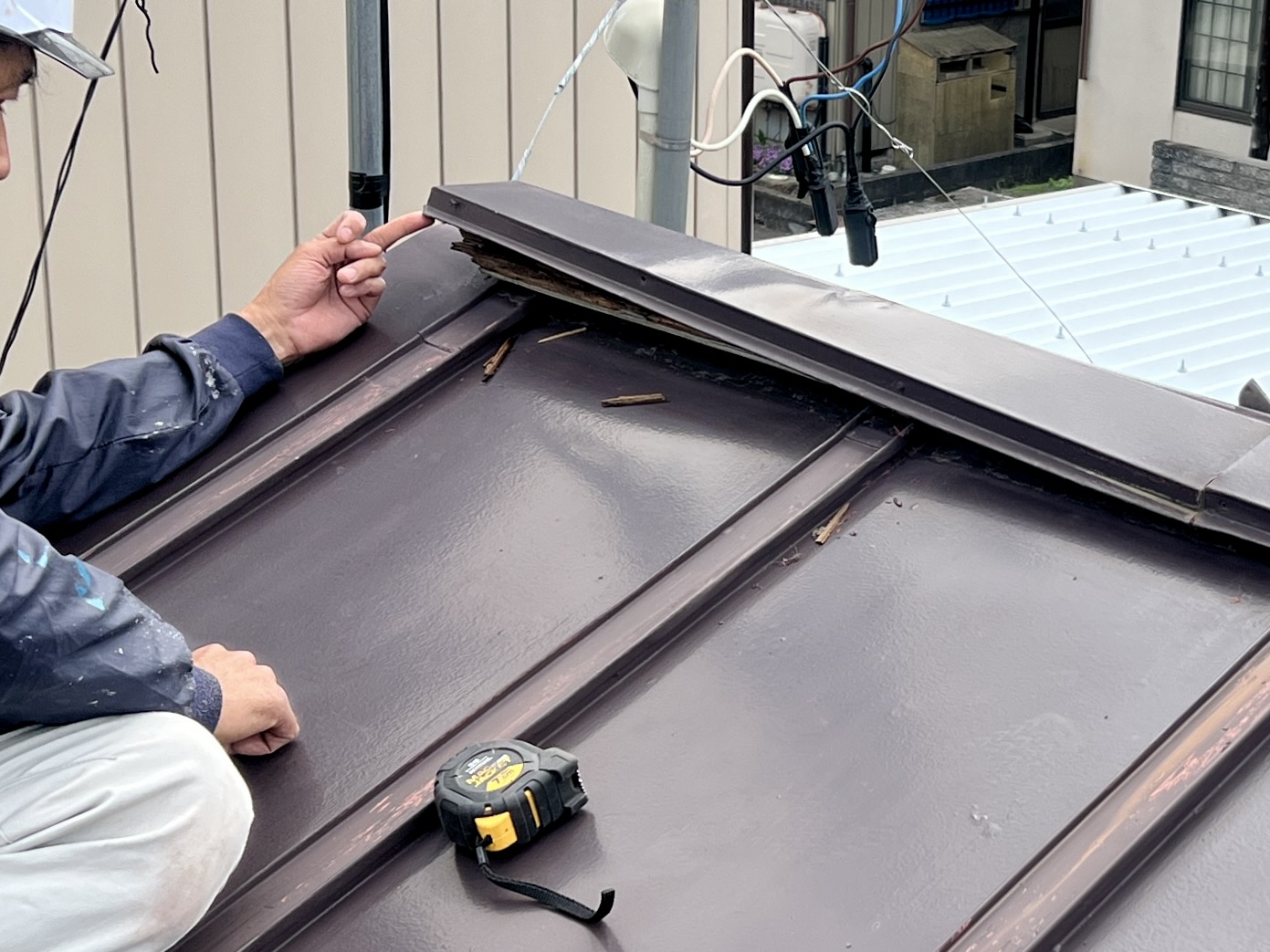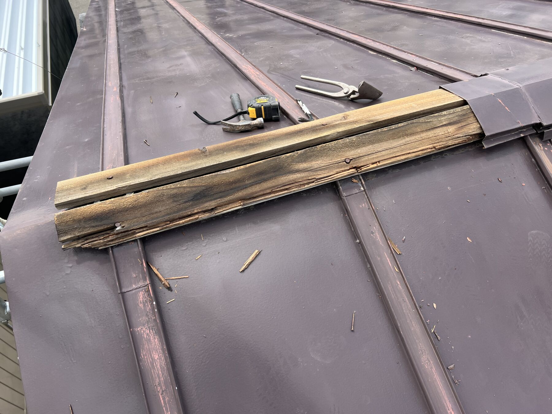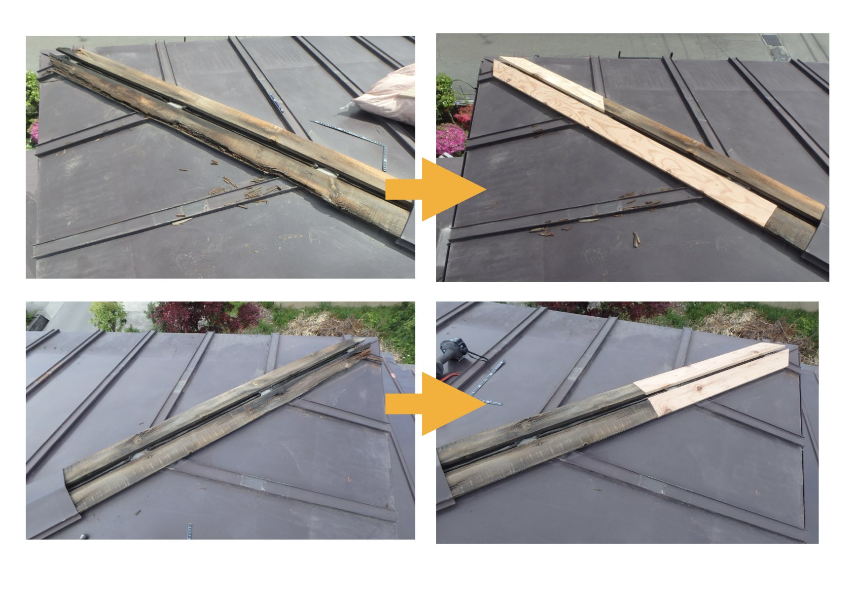 棟板金の下地木材が腐食して板金が固定できない箇所がありました。