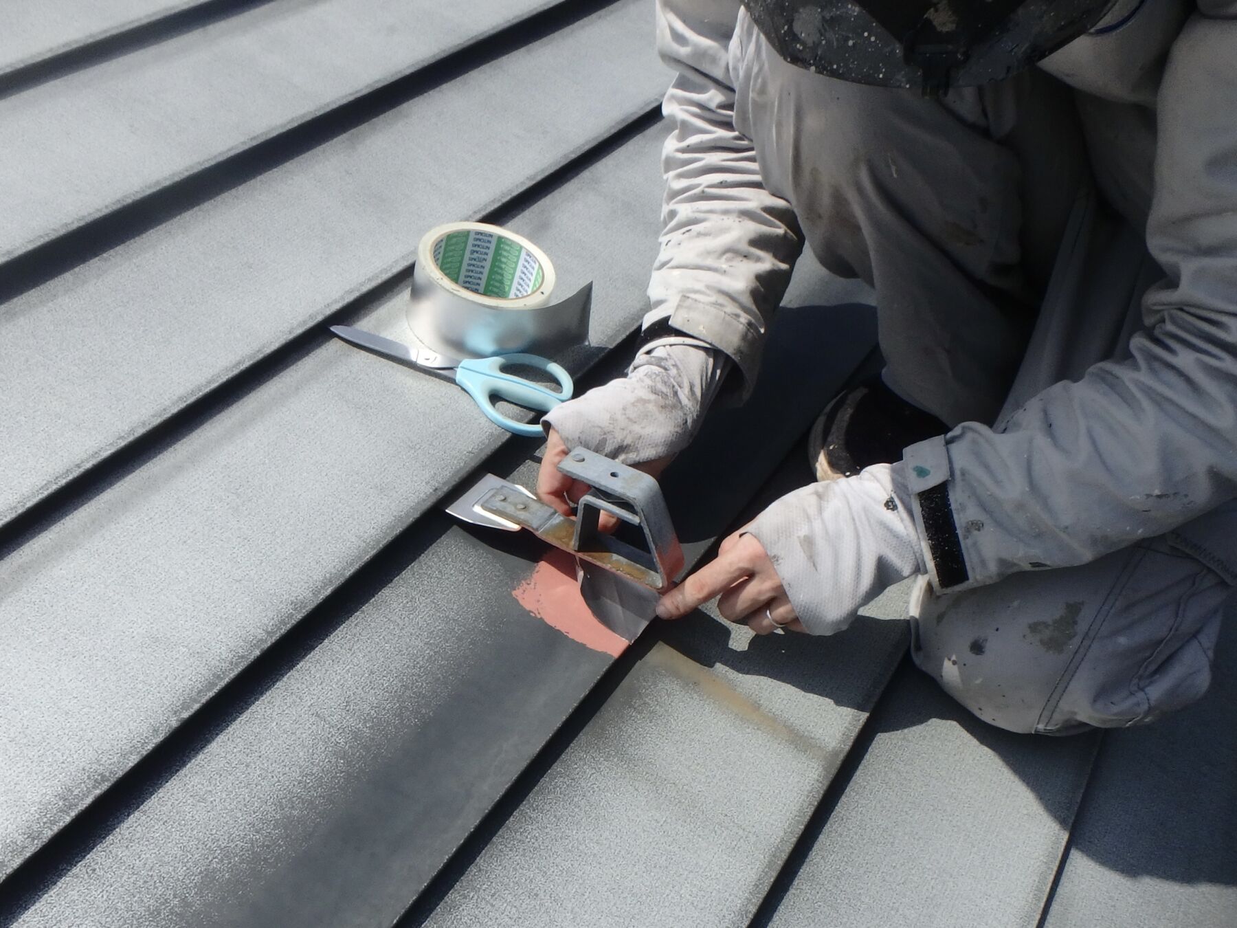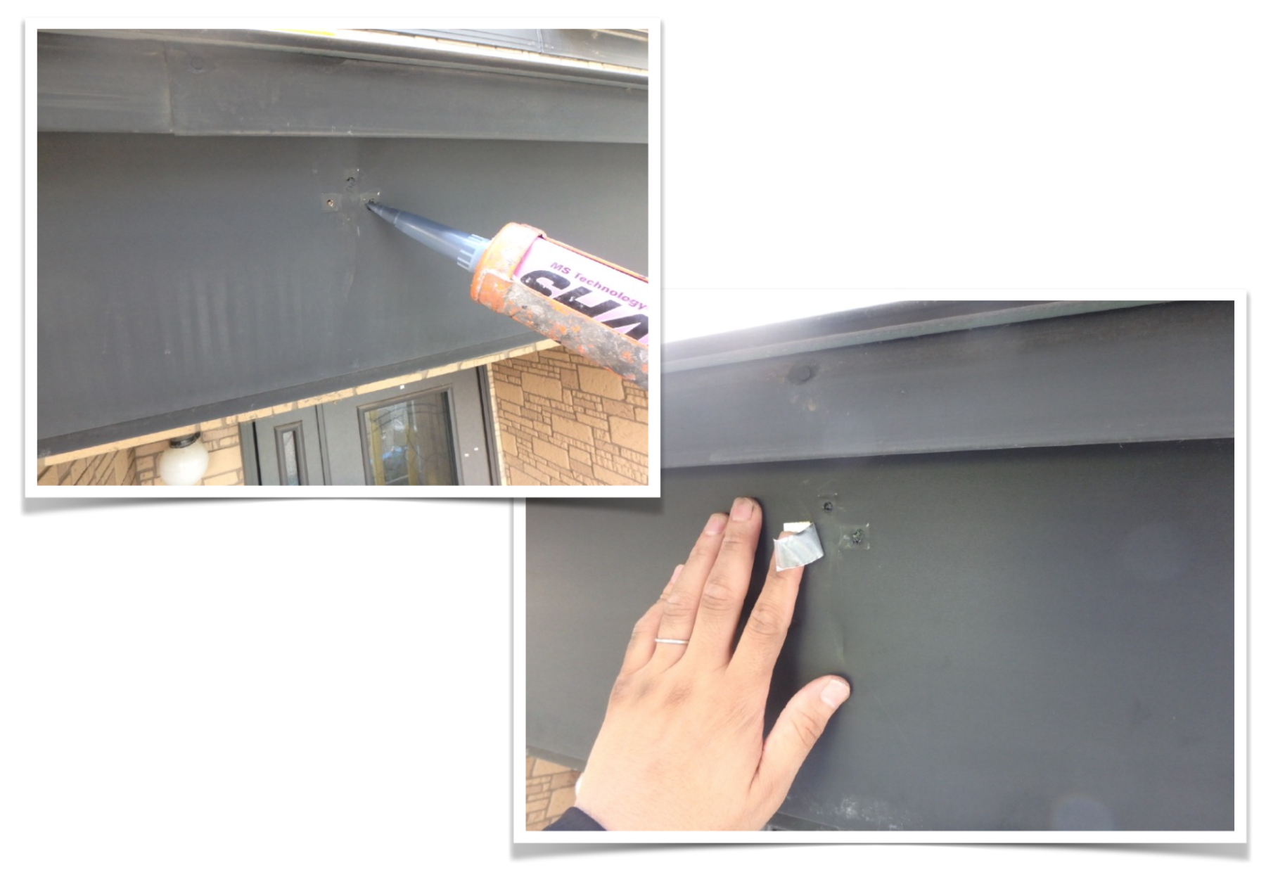 雨樋の釘穴はシーリングで塞いで上からアルミテープを張って保護します。