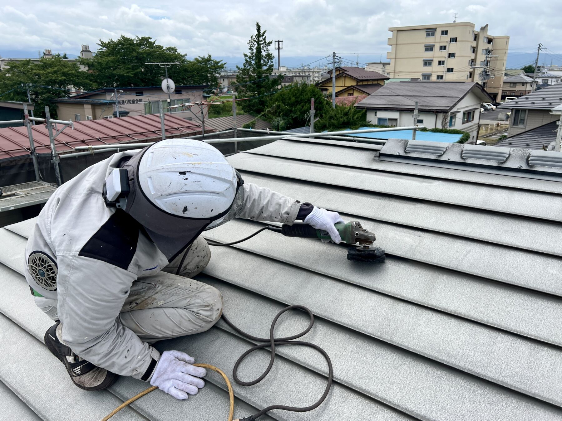 築20年、まだ1度も塗装されていない屋根。表面はほとんど板金素地が剥き出しの状態です。