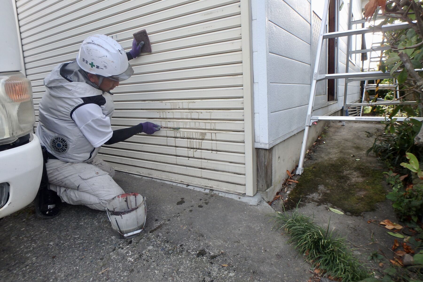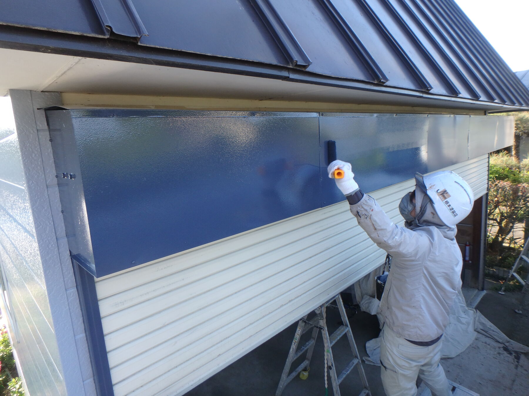 シャッターの上のBOX部分はローラーで2回塗装しました。