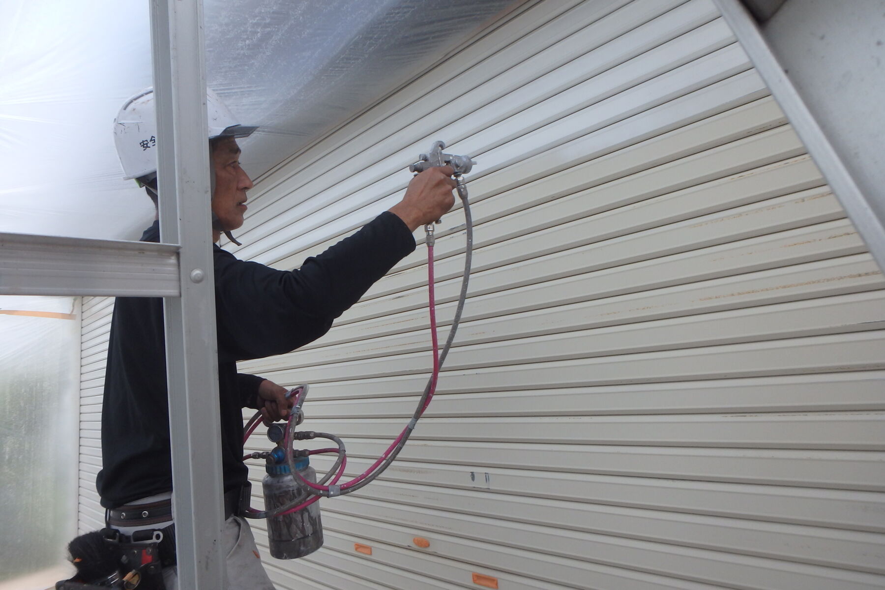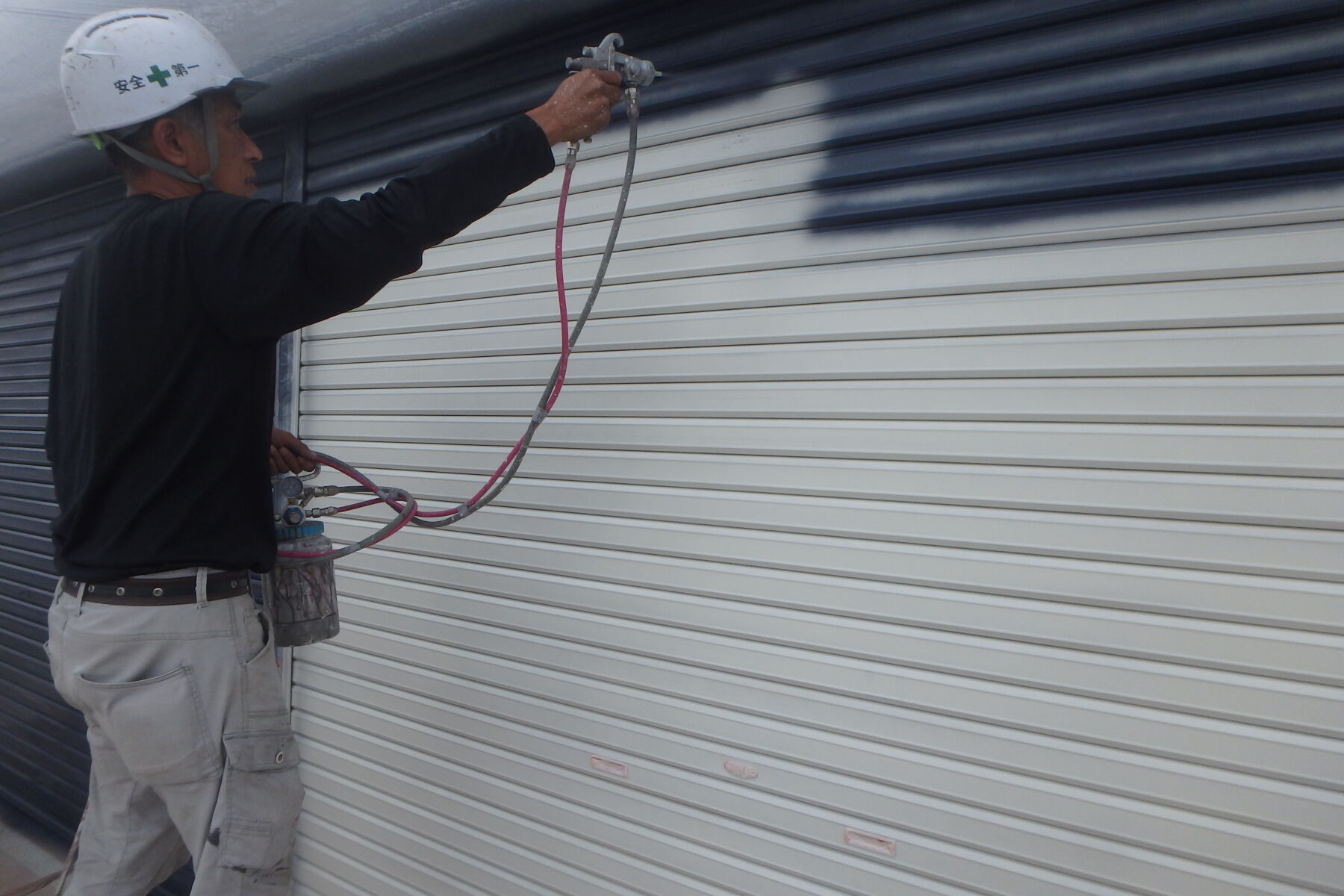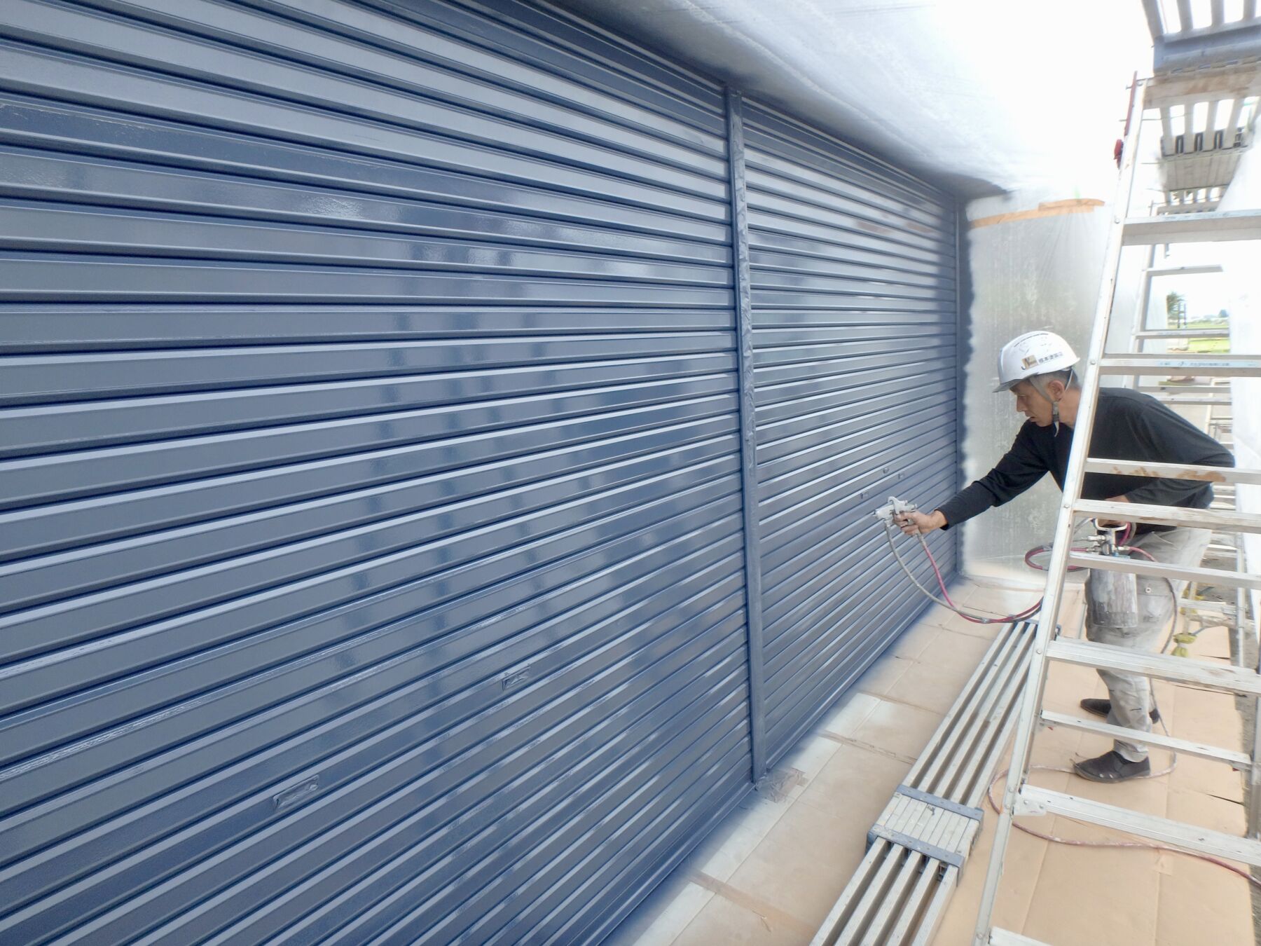シャッターは吹付塗装します。