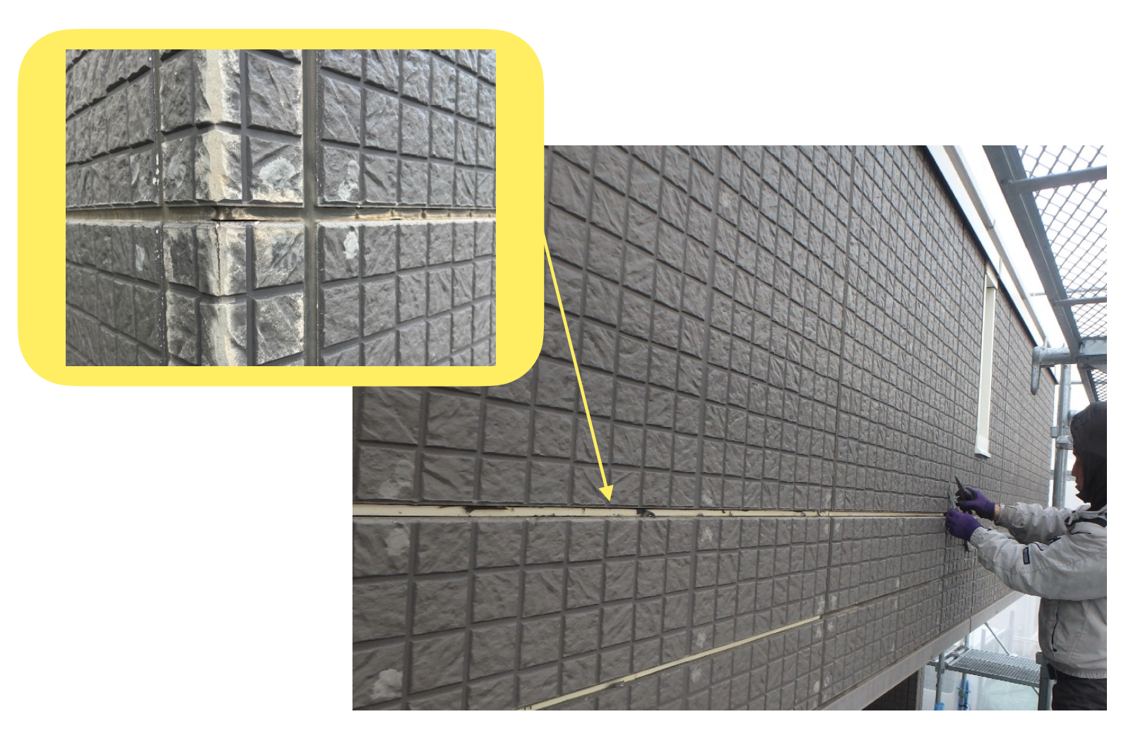 一部劣化が激しい部分はシーリングの打ち直しを行います。