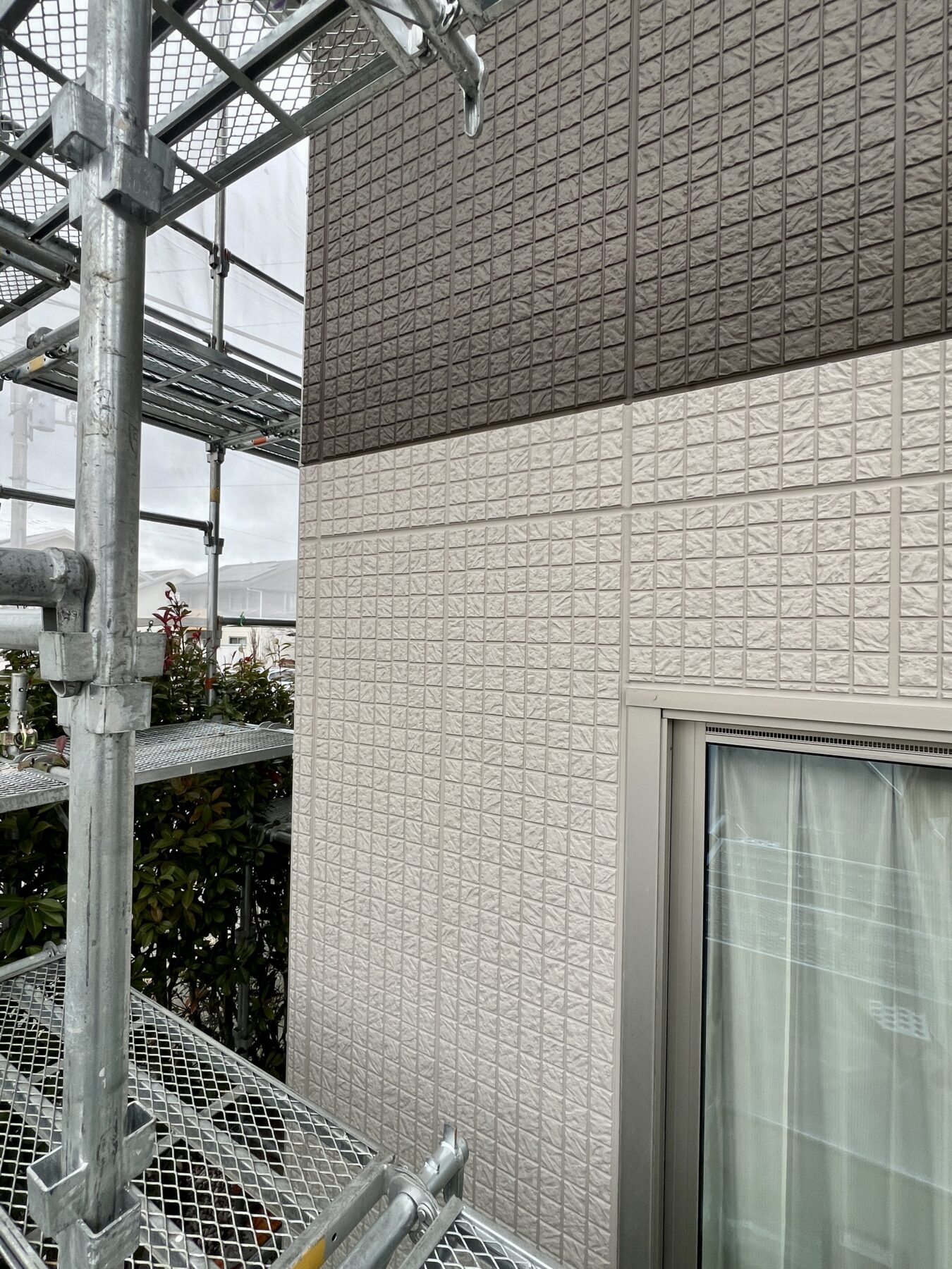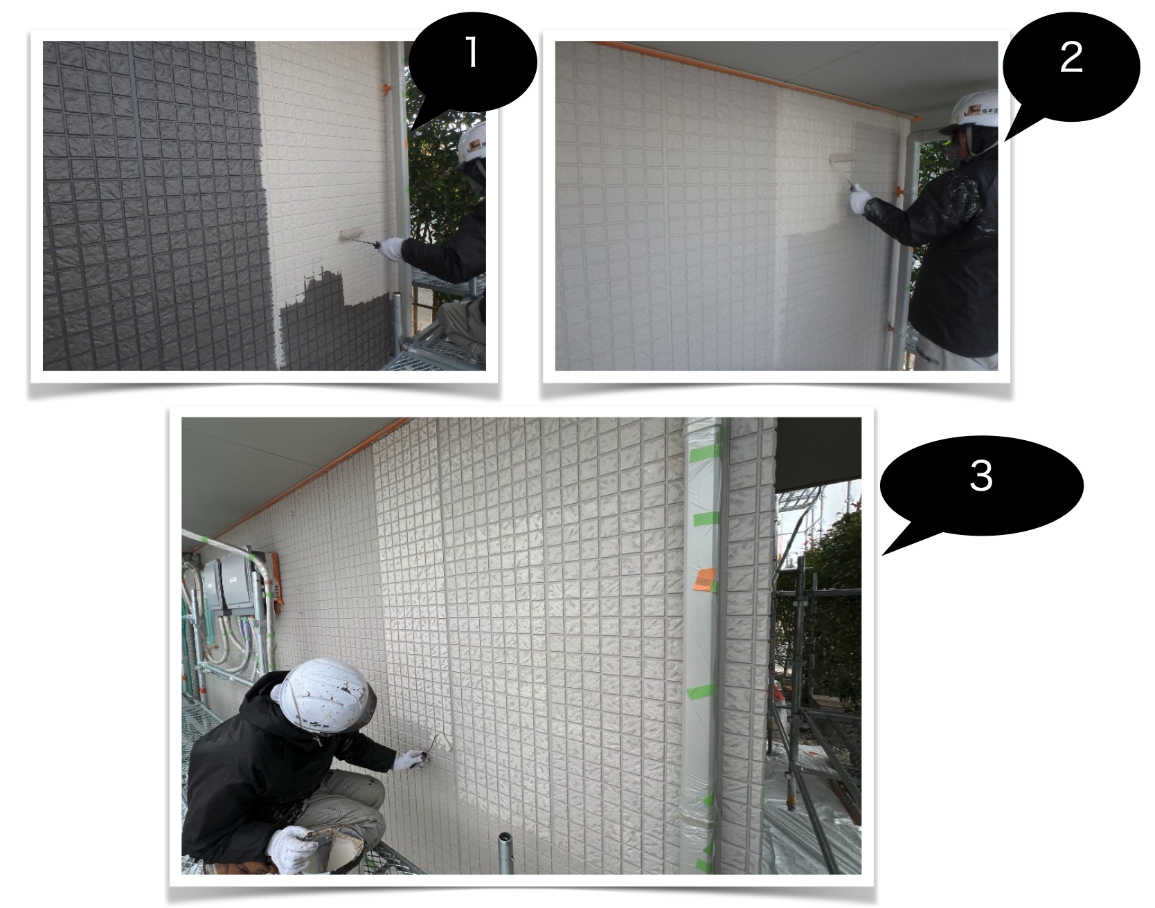 3回目に外壁より少し薄い色で凸の部分にアクセントカラーを塗装しています。