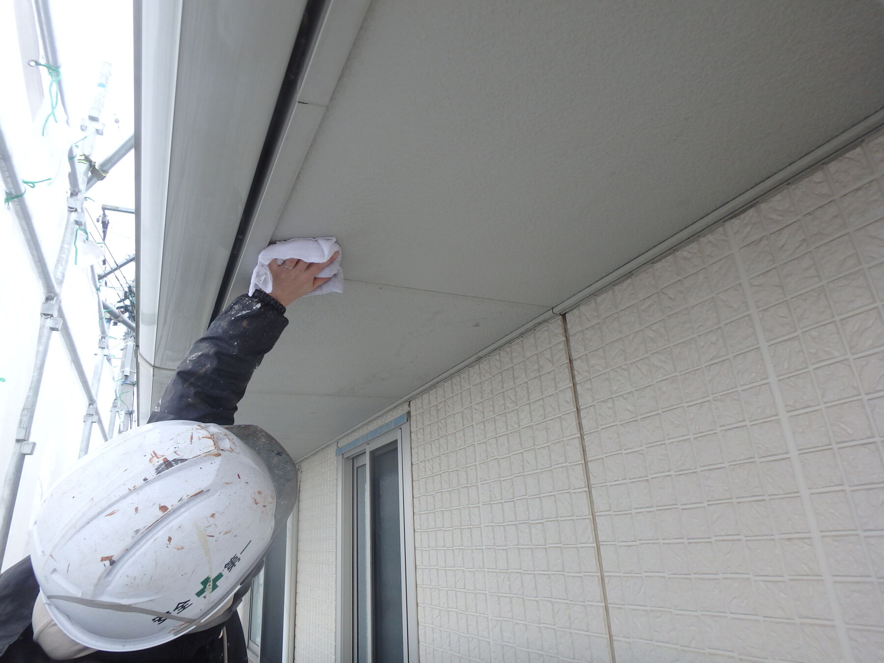 軒天井と軒雨樋を水拭きしました。汚れ、付着物が除去されました。