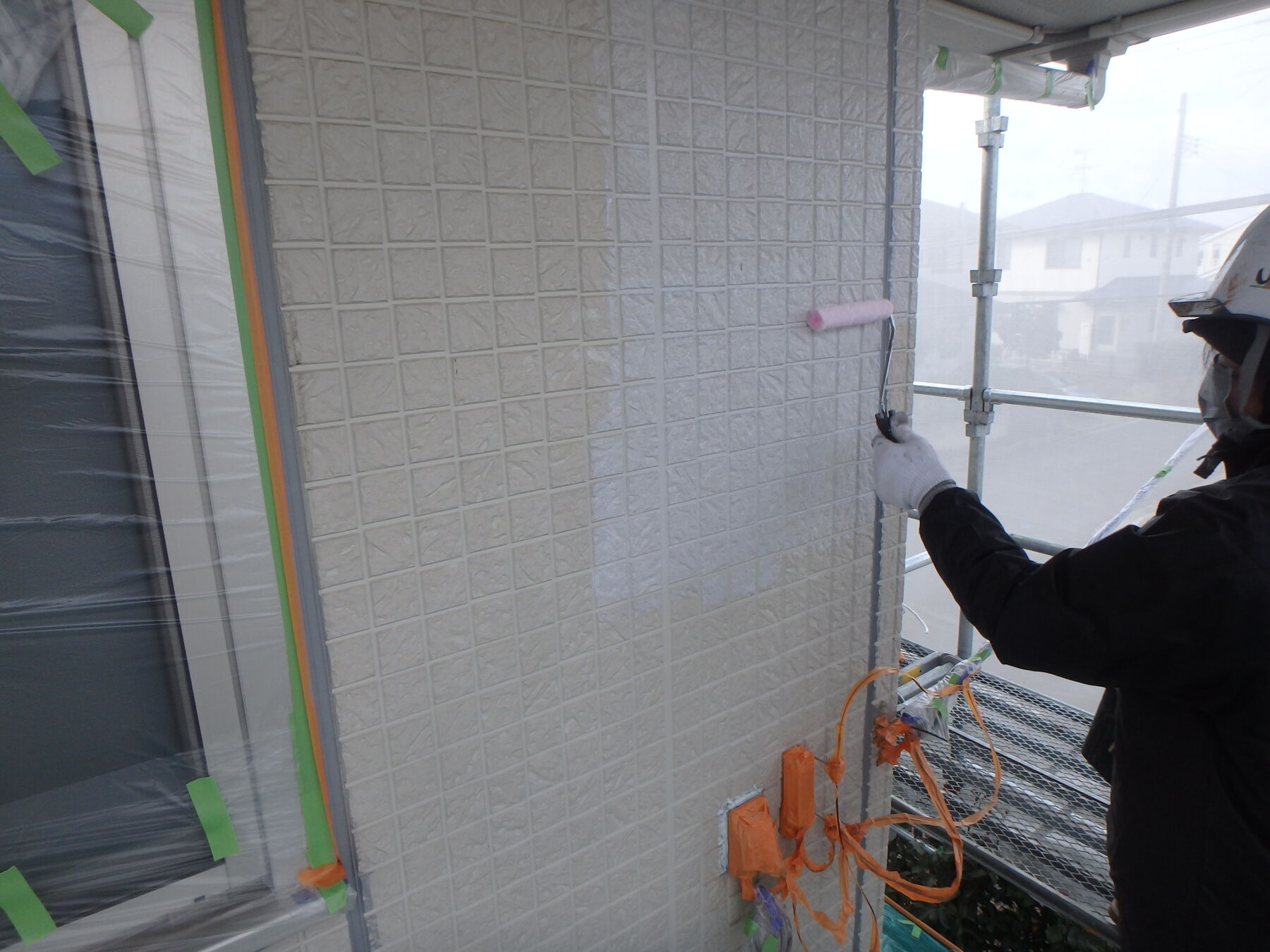 1回目は「厚み」重視で塗装します。 2液無機塗料です。