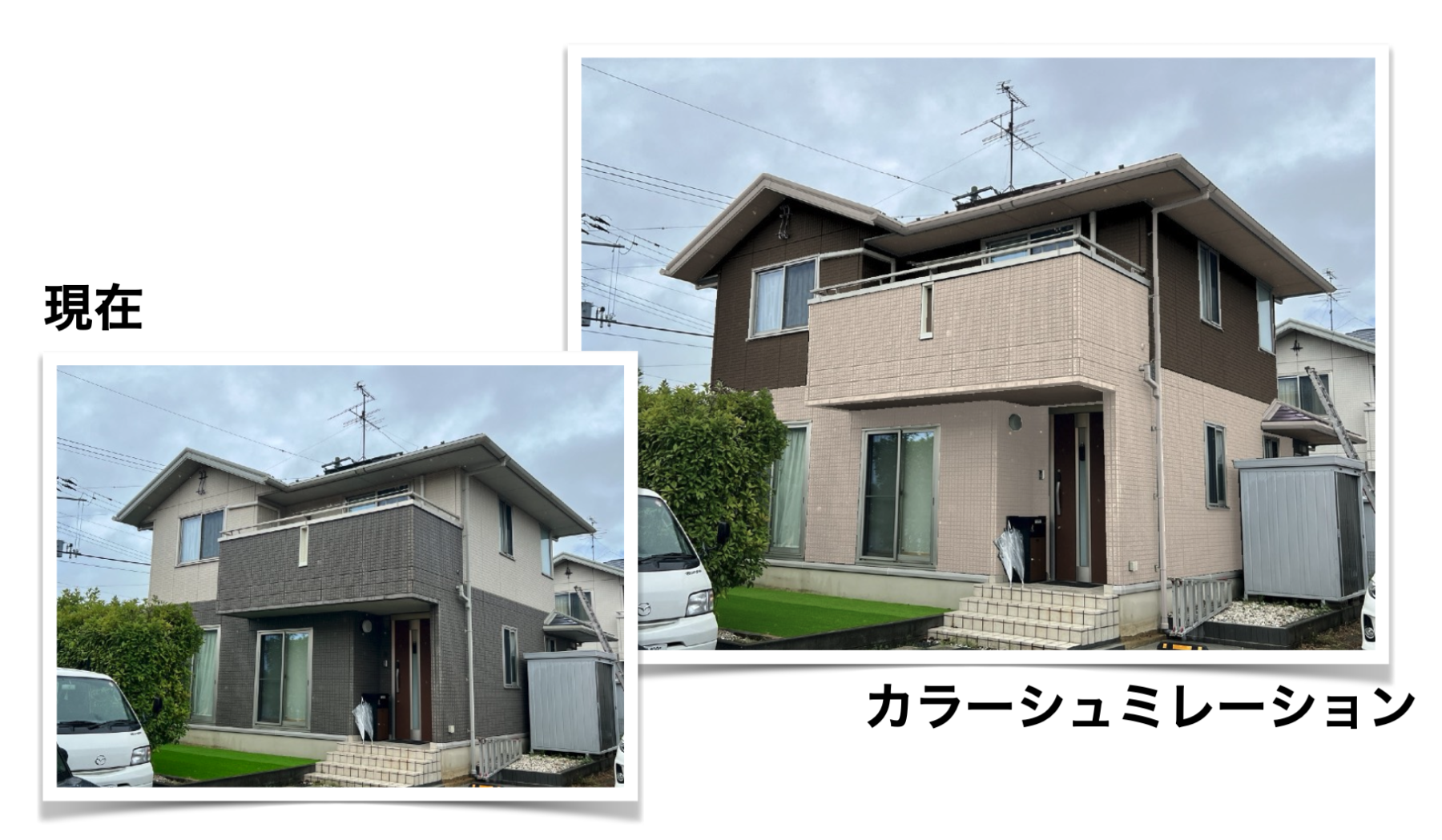 現在の写真からカラーシュミレーションを何パターンか作成し、お客様と相談しながら外壁の色を決めていきました。