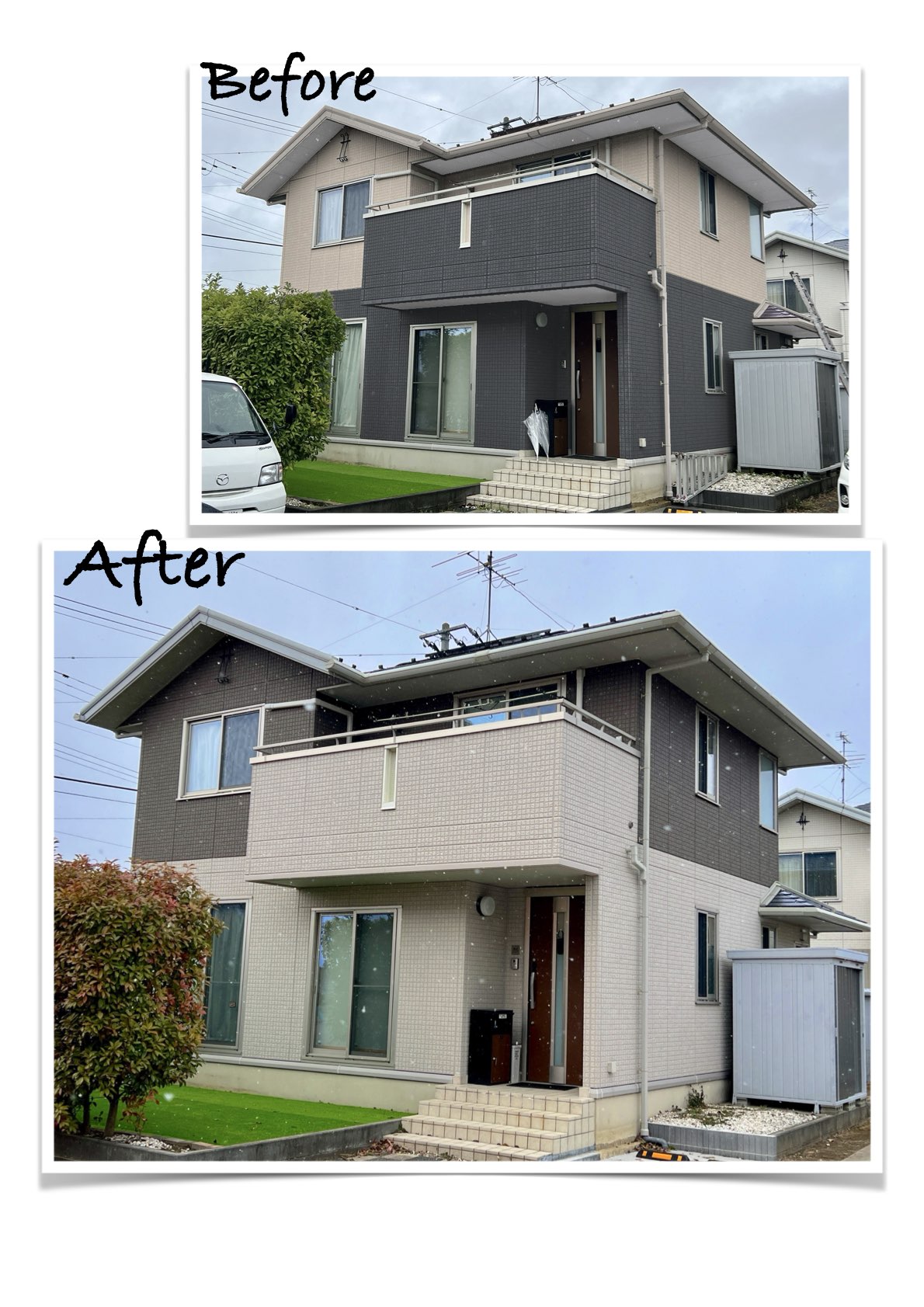 単色での塗装と比べると外壁の凹凸が強調されて立体感のある塗装になりました。
