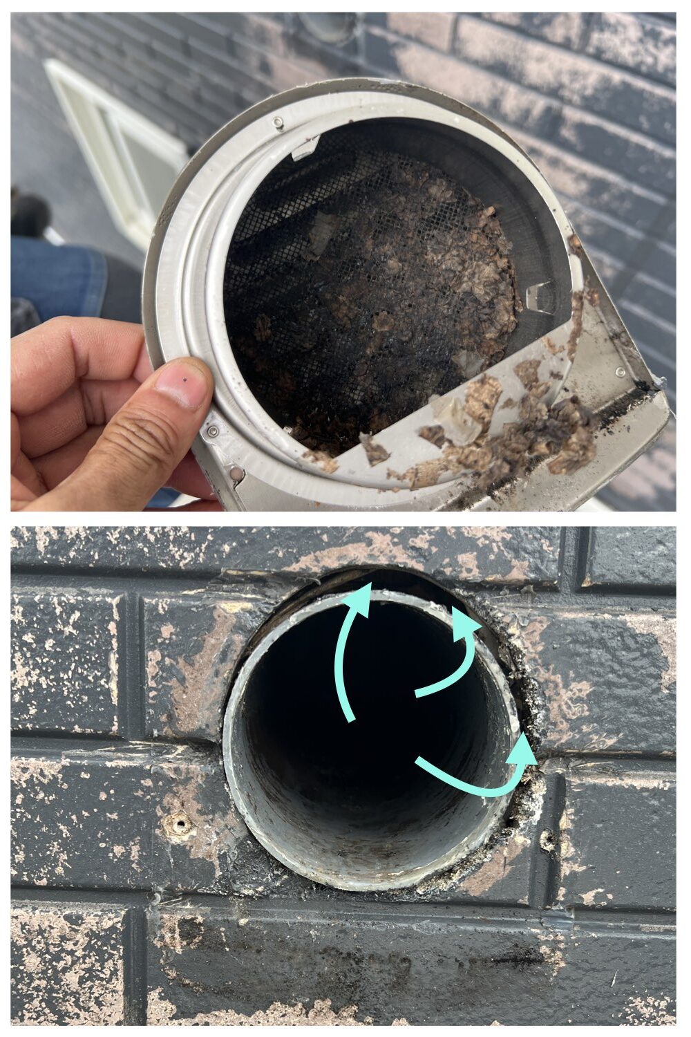 浴室換気フードの接続不良が疑われます。:外壁裏面に湿気が流れ込んでいると思われます。