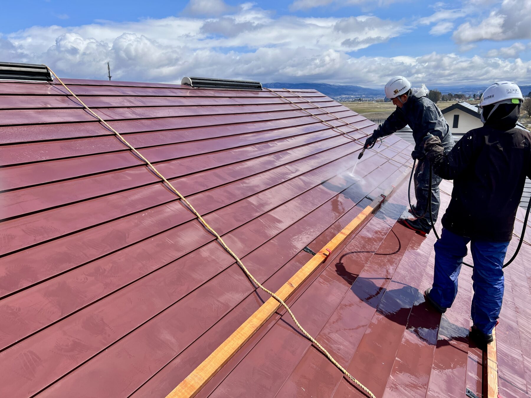 高圧洗浄:屋根に対して垂直の角度で水圧を生かした洗浄を行います。
