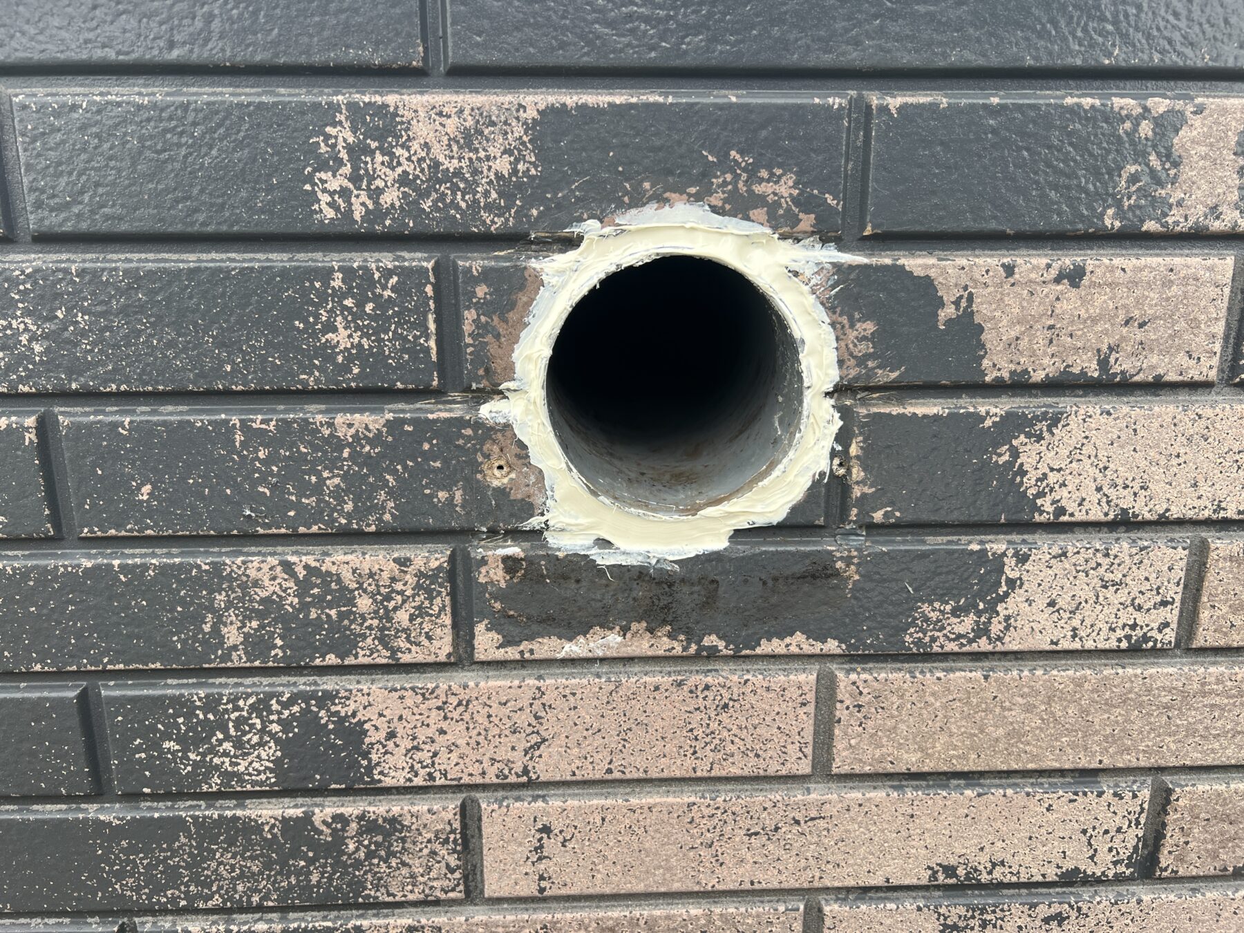 また、スリーブ管と外壁の隙間がシーリングされておらず、外壁裏面に湿った暖気が流れ込んでいる状態でした。