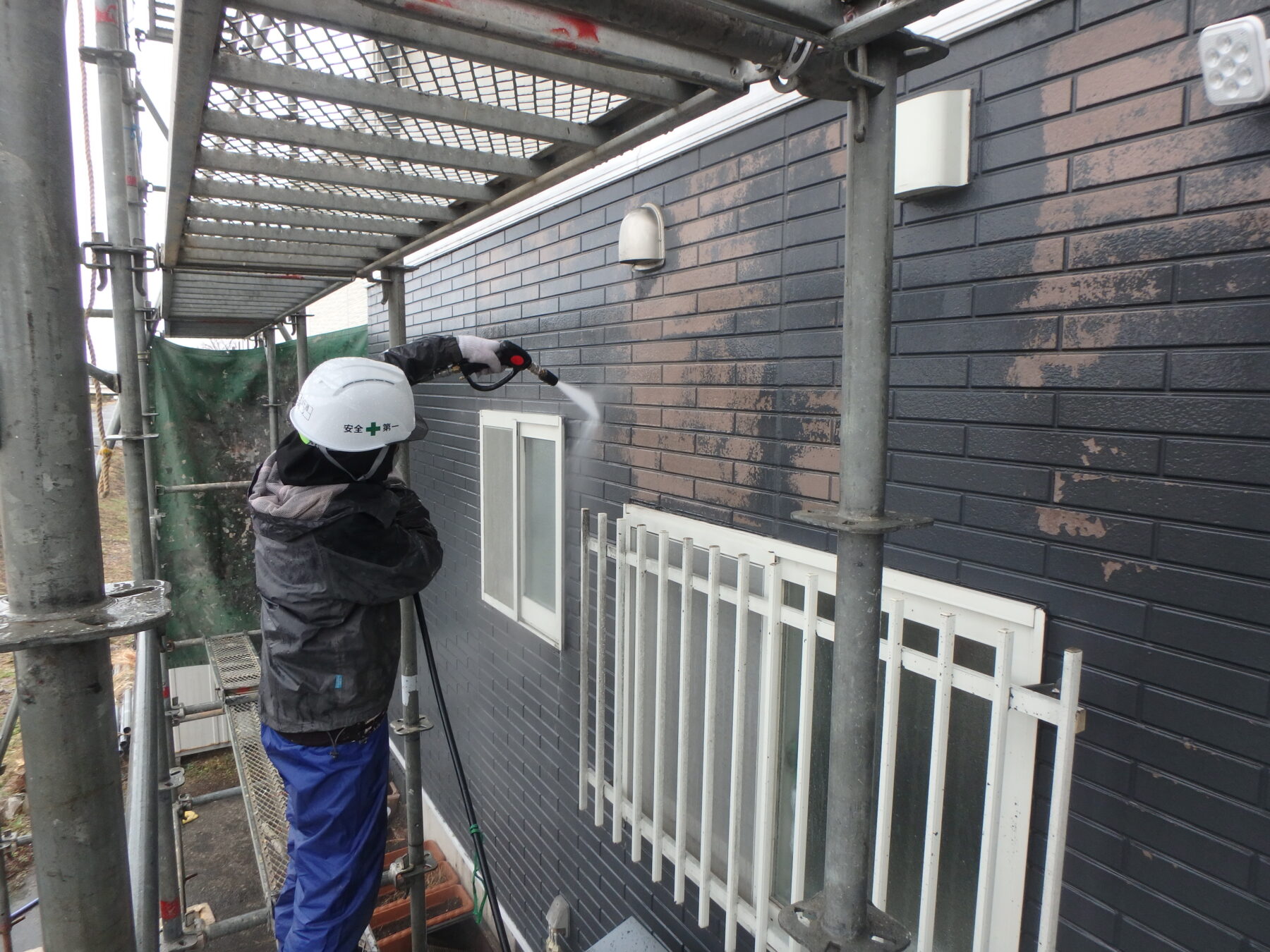 高圧洗浄すると、剥がれかけの塗料がどんどん剥がれてきました。