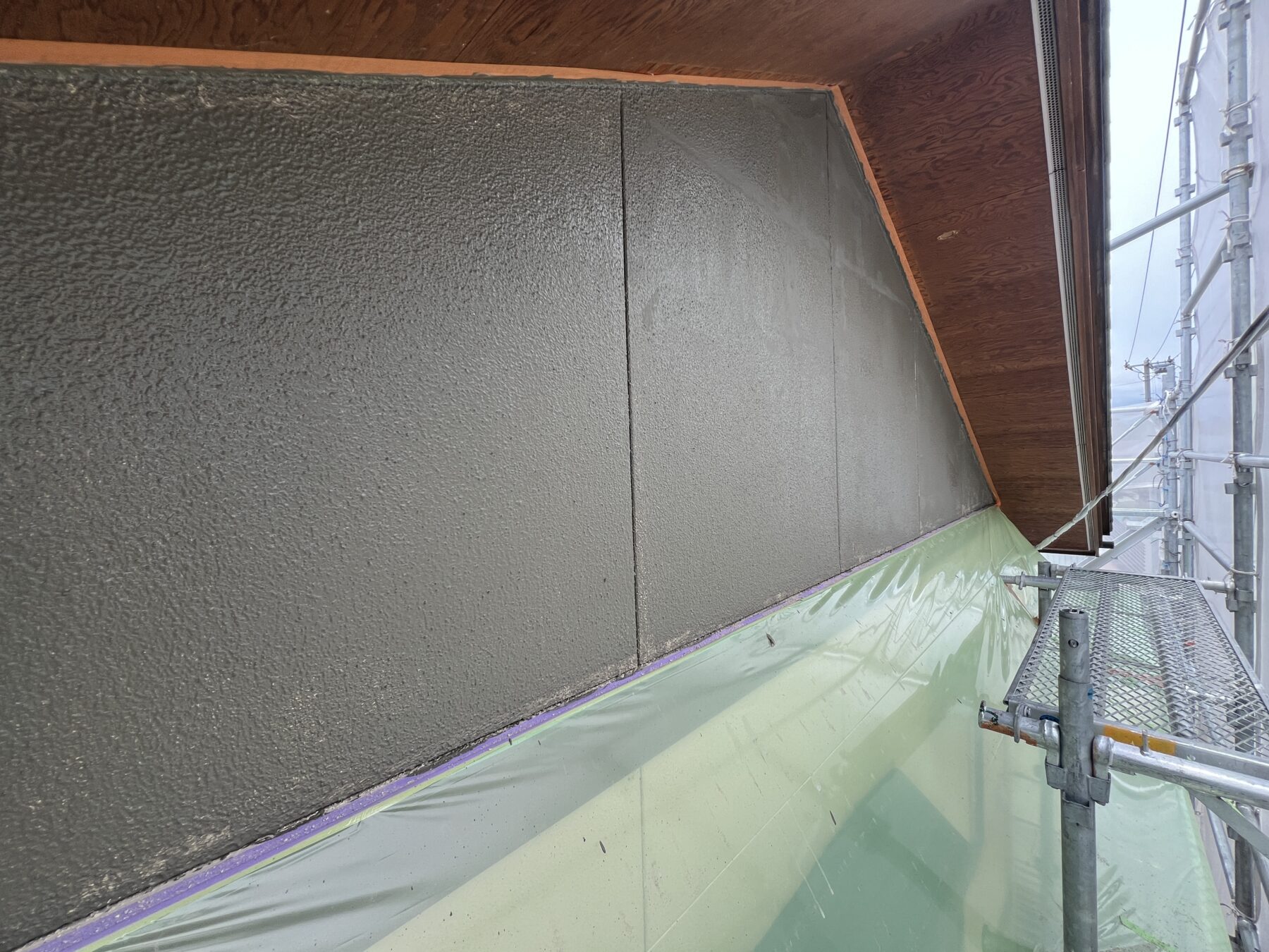 シーラーが乾燥してから砂壁状のアクリルリシンを吹付けしていきます。