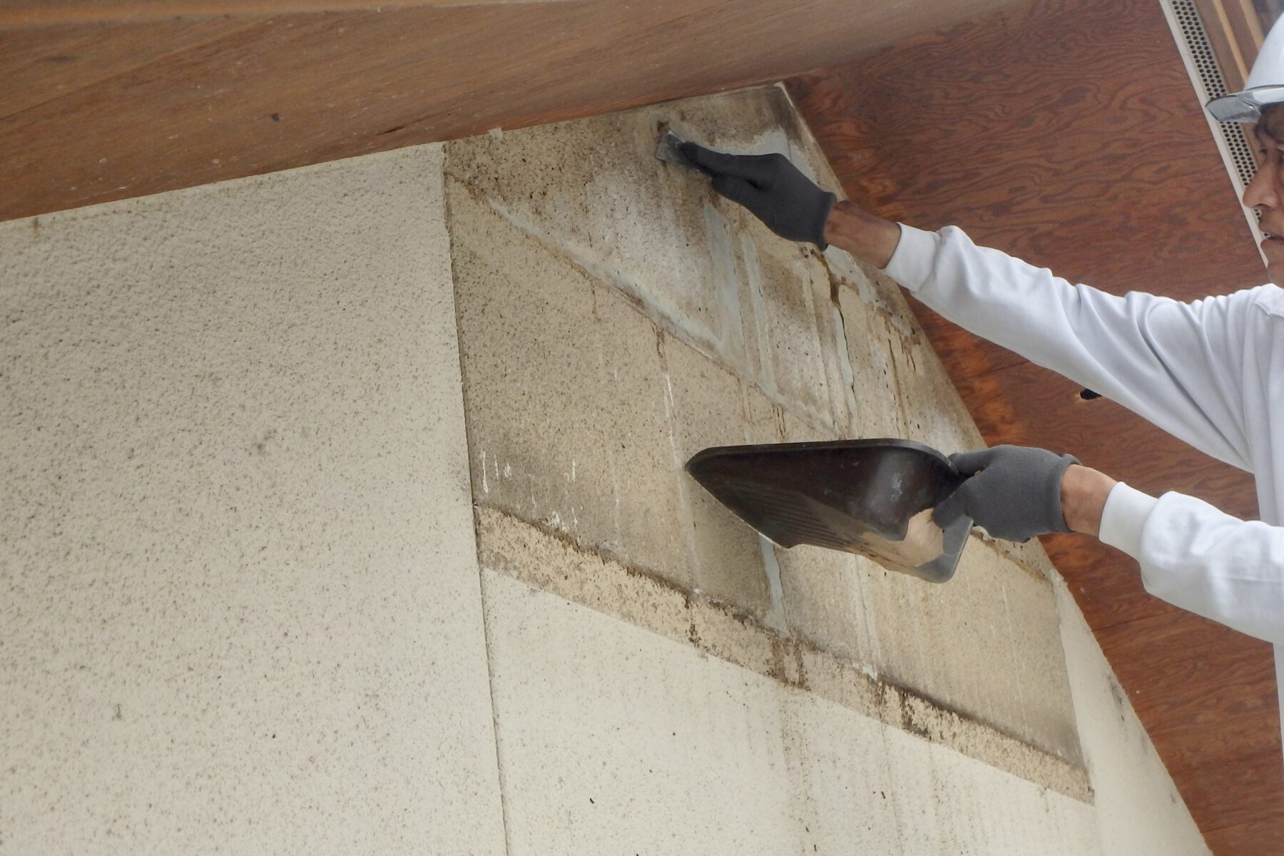 削って凹んでしまった部分は樹脂入りモルタルで回りの部分と同じ高さにします。