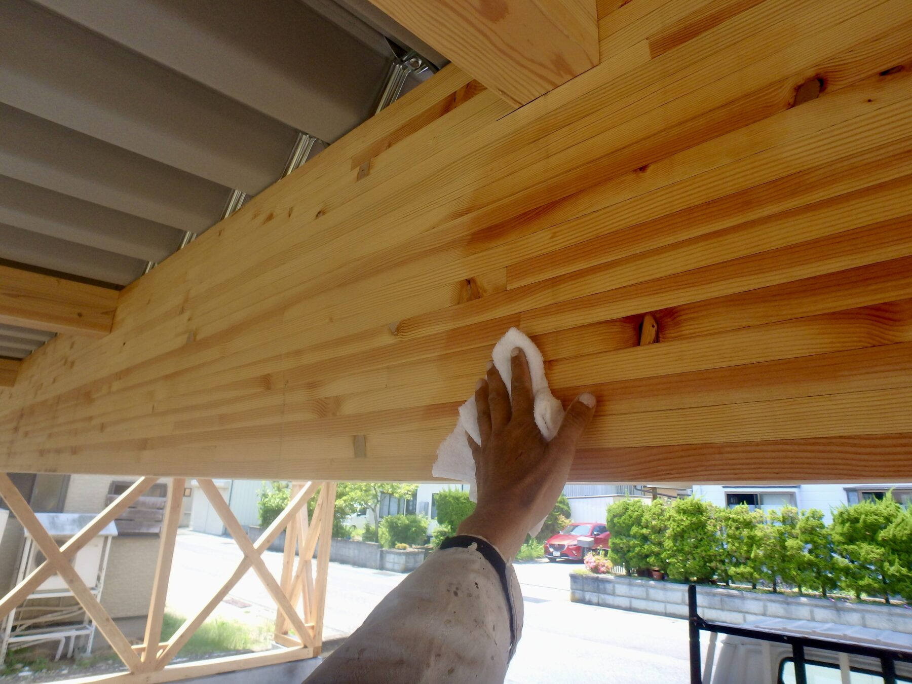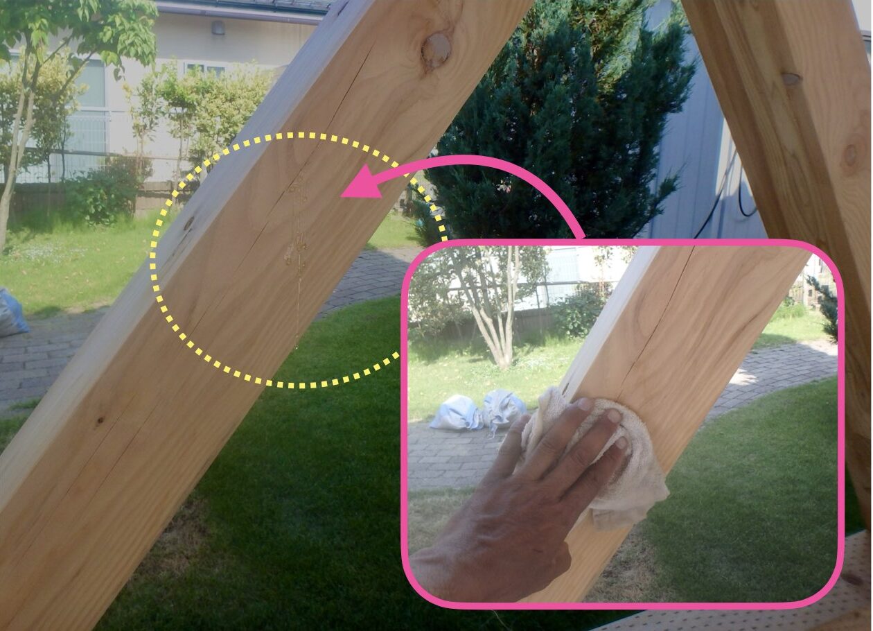 松材はヤニが多く、表面にヤニが出ている部分があります。